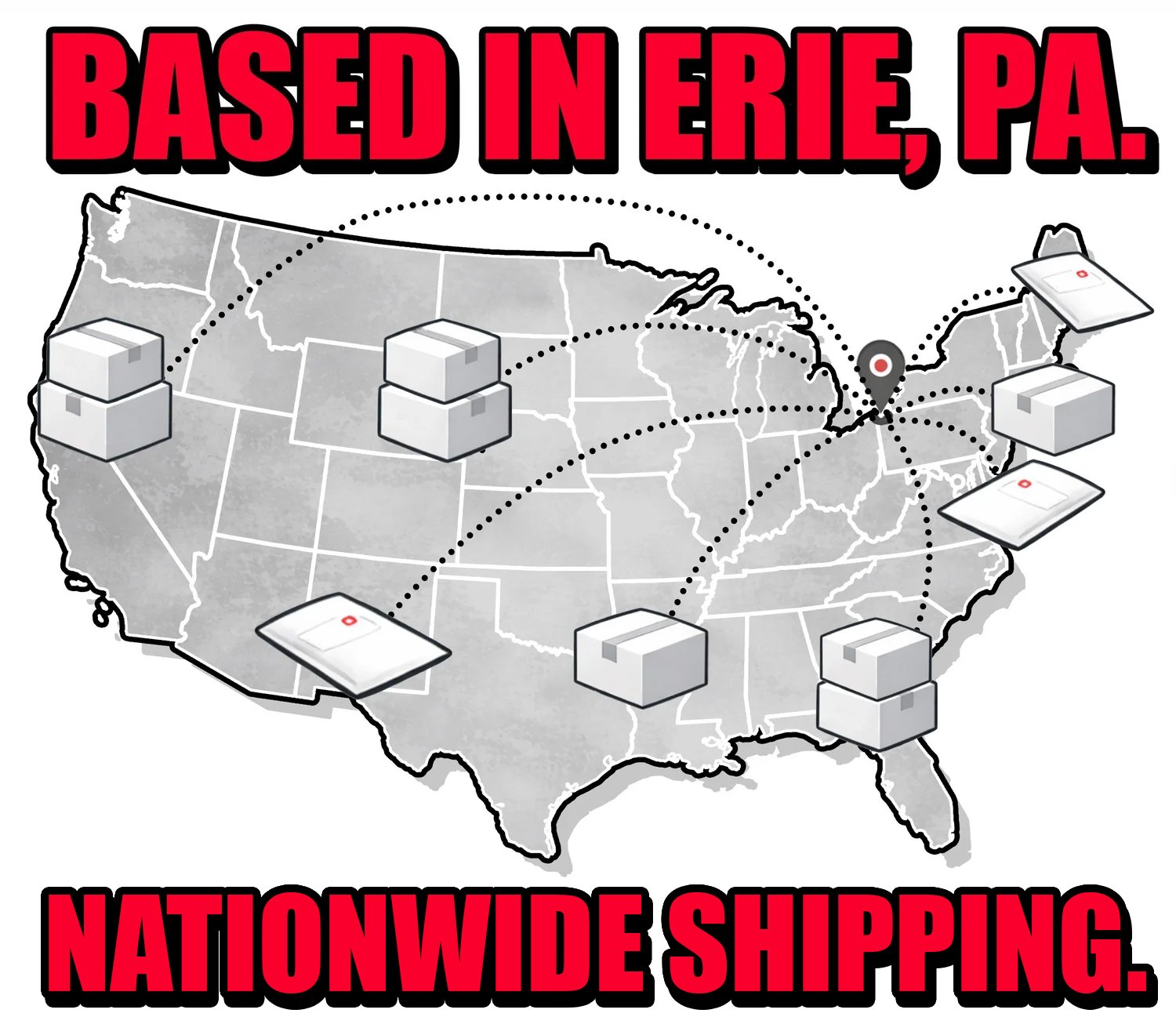 We are located in Erie, PA but our shirts have shipped to all 50 states! Stop by for in-person service or place an order from your phone at home. Find out more about the process HERE